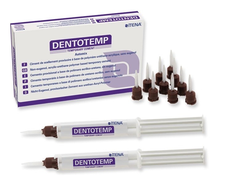 Уникальная двухэтапная полимеризация DentoTemp позволяет достаточно быстро, без каких-либо проблем провести работу по временной фиксации зубных мостов и коронок. Цемент DentoTemp идеально подходит для временного крепления коронок на импланты для проверки временем их совместимости и надежности. При этом используемые коронки могут быть использованы в дальнейшем для постоянной фиксации.